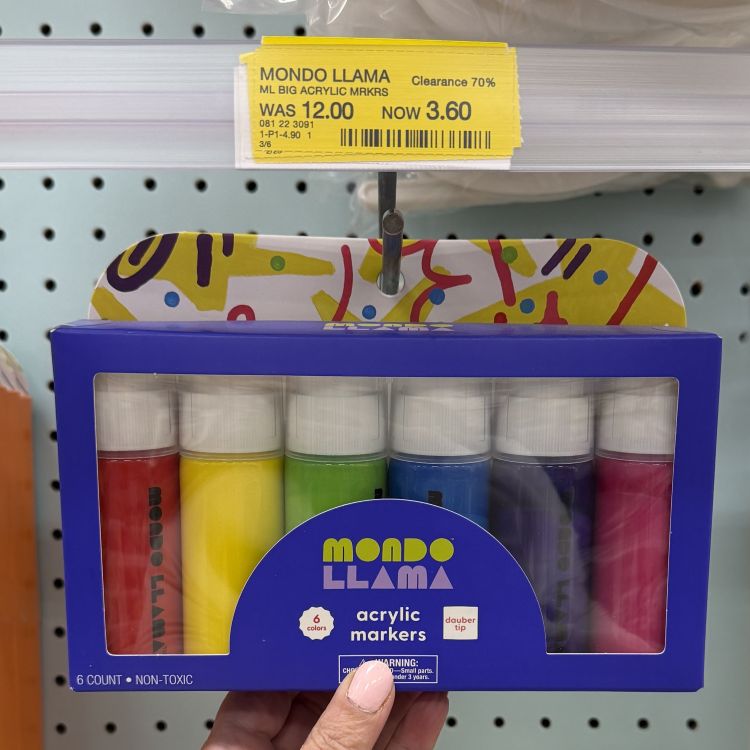 I saw some nice markdowns among the office supplies including this Mondo Llama acrylic marker set.