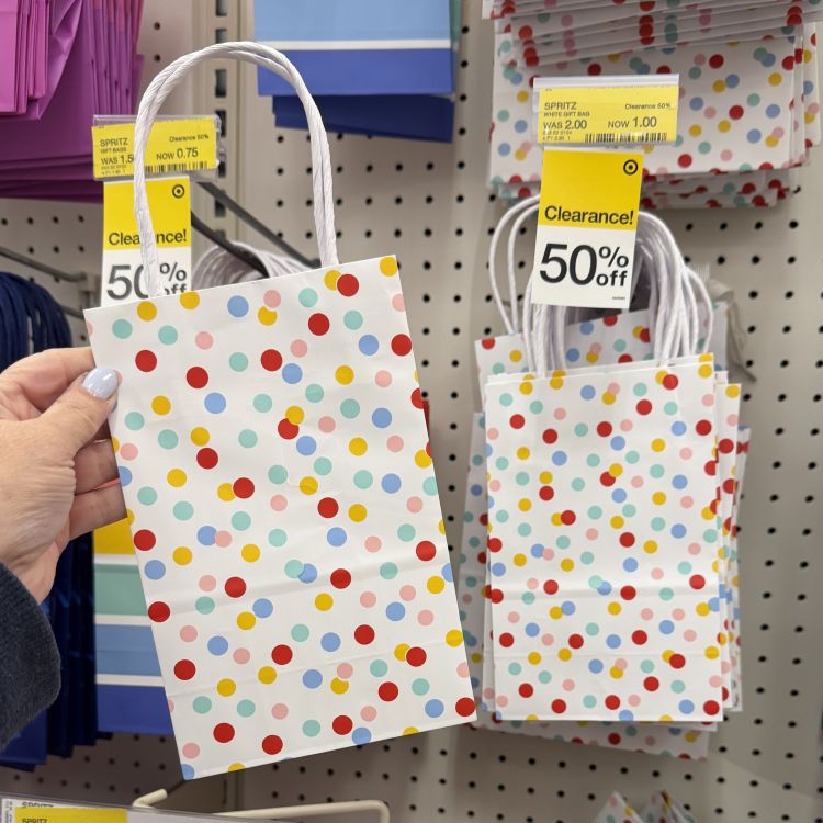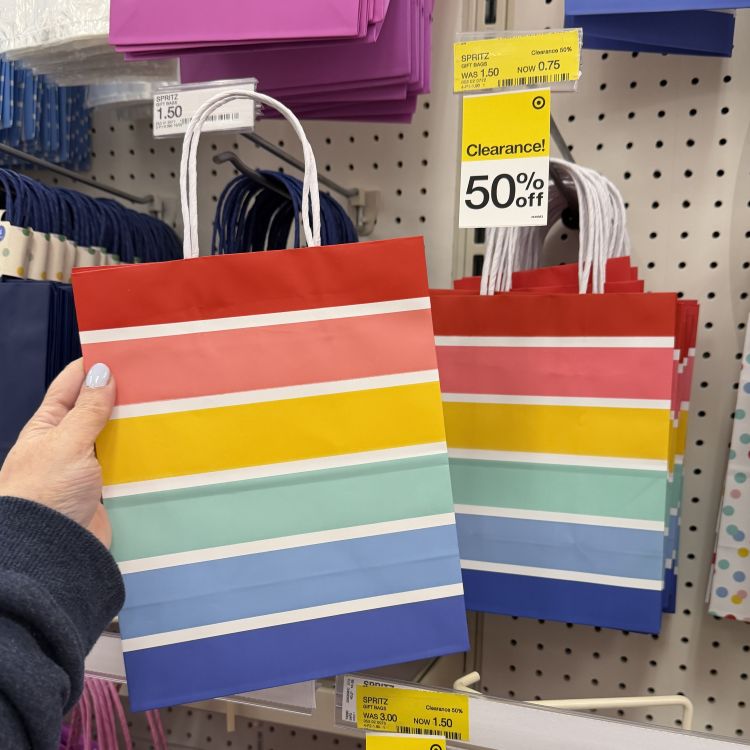 I found a couple of different styles of gift bags 50% off. These could be used year round which is great!
