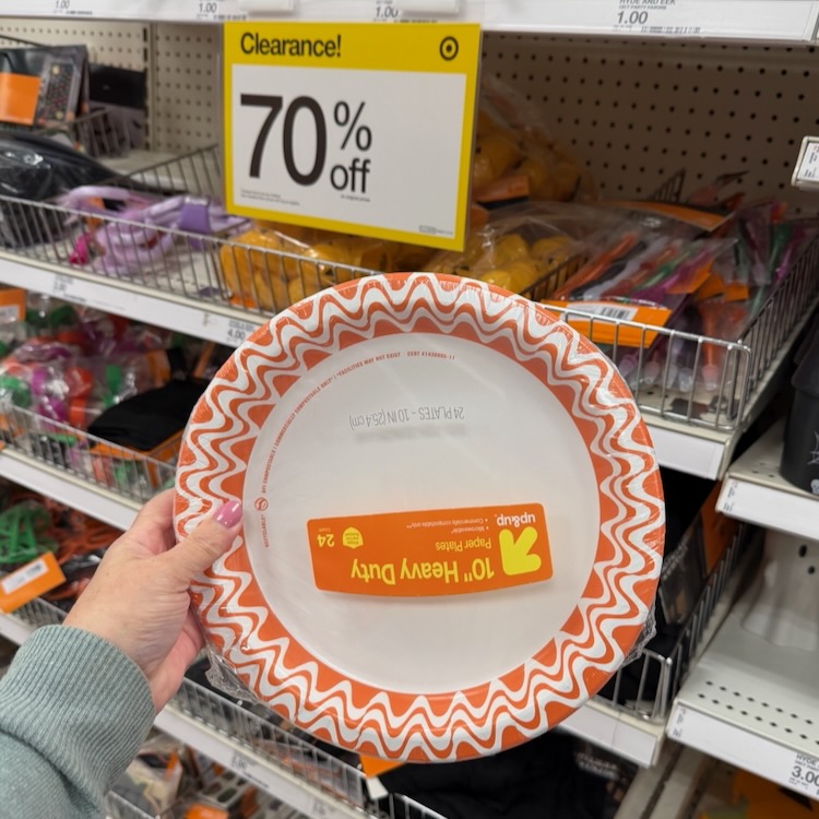 I love to shop the holiday clearance and pick up paper goods like plates, cups and more. Especially when you can use them year round!